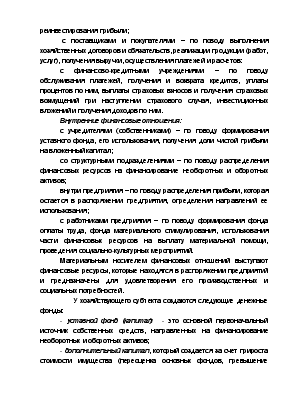 возникают в процессе формирования основного и оборотного капиталов, фондов денежных средств, их распределение и использование.