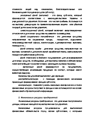 Материальным носителем финансовых отношений выступают  финансовые ресурсы, которые находятся в распоряжении предприятий и предназначены для удовлетворения его производственных и социальных потребностей.