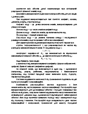 При кодуванні техніко-економічної інформації оперують з поняттями код, кодування, система кодування.