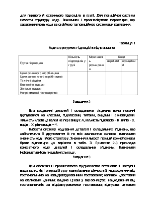 Структура коду–це умовна позначка складу і послідовності розміщення знаків у коді по ознаках і об'єктам класифікації.