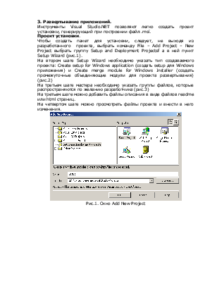 Инструменты Visual Studio.NET позволяют легко создать проект установки, генерирующий при построении файл .msi.