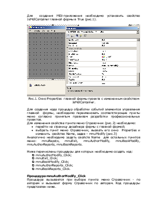 Для создания MDI-приложения необходимо установить свойство IsMdiContainer главной формы в True (рис.1).