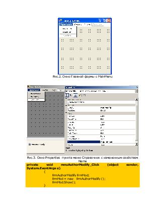 Аналогично необходимо задать свойств Name для остальных пунктов меню: mnuRepots, mnuExit, mnuAuthorModify, mnuBookModify, mnuAuthorReports, mnuBookReports.