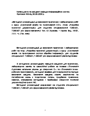 Методичні рекомендації до виконання практичних і лабораторних робіт на тему «Розробка проектної документації» з курсу «Системний аналіз та проектування систем обробки інформації» для студентів спеціальності  7.080401, 7.080407 усіх форм навчання і рівнів підготовки