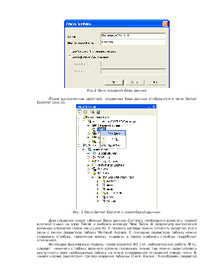 Для создания новой базы данных необходимо в окне Server Explorer кликнуть правой кнопкой мыши на узле Data Connection и выбрать пункт Create New SQL Server Database (рис.1).