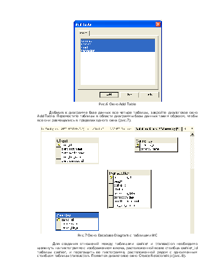 Добавив к диаграмме базе данных все четыре таблицы, закройте диалоговое окно Add Table. Переместите таблицы в области диаграммы базы данных таким образом, чтобы все они размещались в пределах одного окна (рис.7).