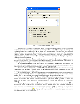 Установка флажка Enforce relationship for replication (Сохранять отношение при репликации) гарантирует сохранение целостности данных на уровне ссылок (ограничение внешнего ключа) при репликации данных в другую базу данных.