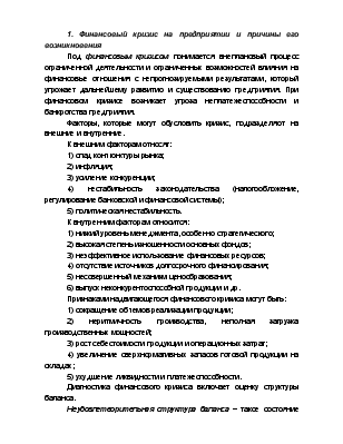 1) анализ причин возникновения финансового кризиса и принятие решения о санации.