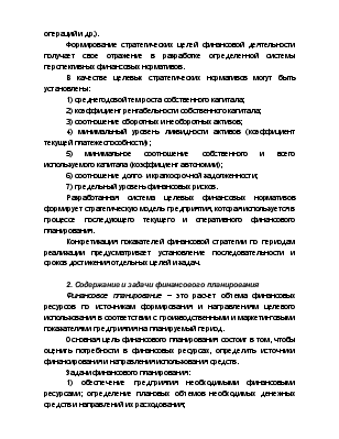 Формирование стратегических целей финансовой деятельности получает свое отражение в разработке определенной системы перспективных финансовых нормативов.