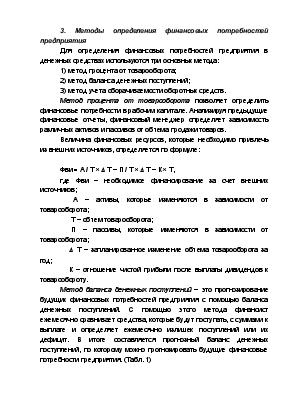 Для определения финансовых потребностей предприятия в денежных средствах используются три основных метода: