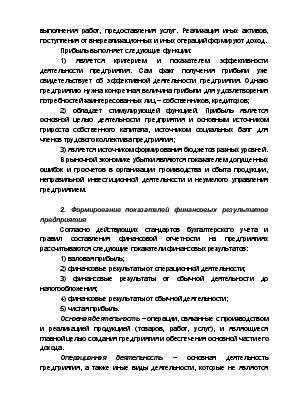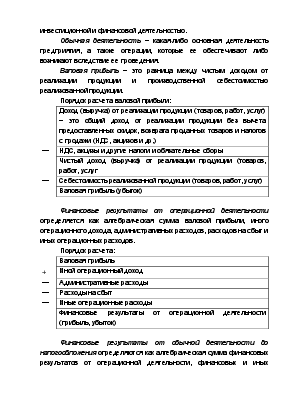 Согласно действующих стандартов бухгалтерского учета и  правил составления финансовой отчетности на предприятиях рассчитываются следующие показатели финансовых результатов: