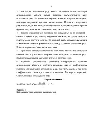 6. Рассчитать относительное отклонение коэффициентов полинома аппроксимации чётного и нечётного исходного ряда от коэффициентов полинома аппроксимации сглаженного ряда. Получить среднее отклонение коэффициентов, если оно укладывается в диапазон ±5%, то ряд однородный. Сделать вывод об однородности ряда.