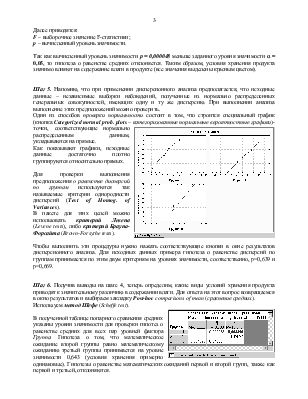 Чтобы выполнить эти процедуры нужно нажать соответствующие кнопки в окне результатов дисперсионного анализа. Для исходных данных примера гипотеза о равенстве дисперсий по группам принимается по этим двум критериям на уровнях значимости