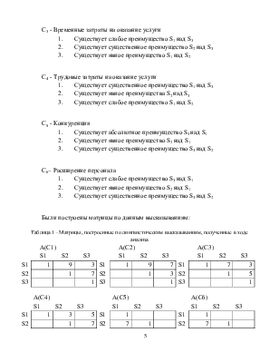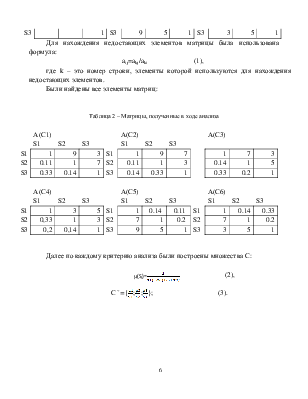 Таблица 1 - Матрицы, построенные по лингвистическим высказываниям, полученные в ходе анализа