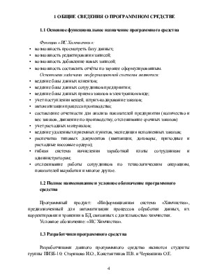 1 ОБЩИЕ СВЕДЕНИЯ О ПРОГРАММНОМ СРЕДСТВЕ. 4