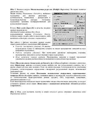 Опция Провести анализ (пошаговый, гребневый и др.) (Advanced options) открывает диалоговое окно Определение модели, в котором можно выбрать как тип регрессионного анализа, так и другие опции (об этом окне см.ниже). Если эта опция отменена, то используются по умолчанию установки, соответствующие определению стандартной регрессионной модели, включающей свободный член.