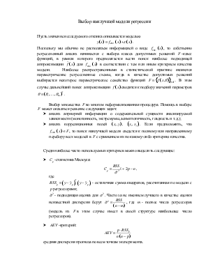 - подходящая оценка для . Часто за не имением лучшего в качестве оценки неизвестной дисперсии берут , где - полное число регрессоров (модель из в этом случае имеет в своей структуре наибольшее число регрессоров).