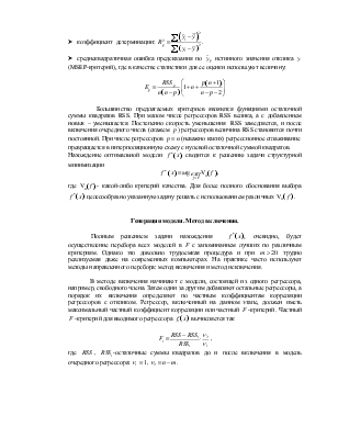 Полным решением задачи нахождения  , очевидно, будет осуществление перебора всех моделей в с запоминанием лучших по различным критериям. Однако это довольно трудоемкая процедура и при  трудно реализуемая даже на современных компьютерах. На практике часто используют методы направленного перебора: метод включения и метод исключения.