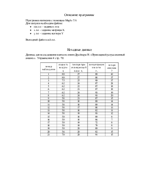 Данные для исследования взяты из книги Дрейпера Н. «Прикладной регрессионный анализ».  Упражнения 4  стр. 78: