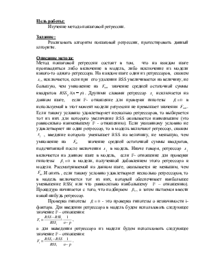 на тему: “Выбор наилучшей регрессии. Пошаговая регрессия”