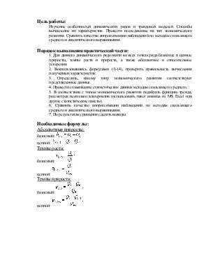 Изучение особенностей динамических рядов и трендовых моделей. Способы вычисление их характеристик. Провести исследование на тип экономического развития. Сравнить качество аппроксимации наблюдений по методам скользящего среднего и аналитического выравнивания.