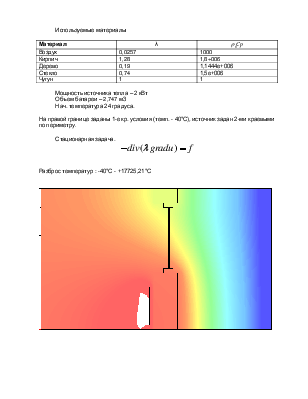 На правой границе заданы 1-е кр. условия (темп. - 40°С), источник задан 2-ми краевыми по периметру.