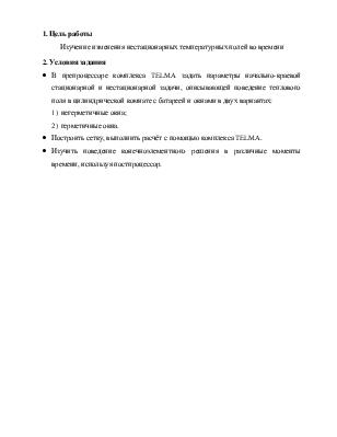 · В препроцессоре комплекса TELMA задать параметры начально-краевой стационарной и нестационарной задачи, описывающей поведение теплового поля в цилиндрической комнате с батареей и окнами в двух вариантах: