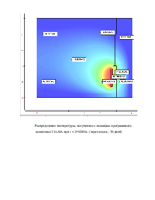 Распределение температуры, полученное с помощью программного комплекса TELMA при t = 2592000c. (через месяц - 30 дней)
