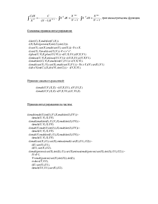 В программу включены правила, реализующие основные свойства интеграла, а также правила интегрирования некоторых функций (взяты из справочника интегралов):