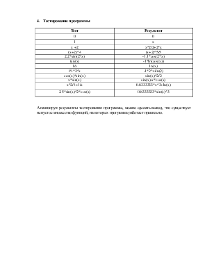 6. Используя в качестве прототипа программу аналитического дифференцирования, составить программу аналитического интегрирования для выбранного класса функций.