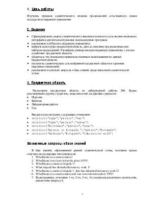 § выбрать некоторую предметную область, дать ее описание предложением или набором предложений. Расширить универсальную падежную грамматику с учетом семантики предметной области;