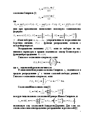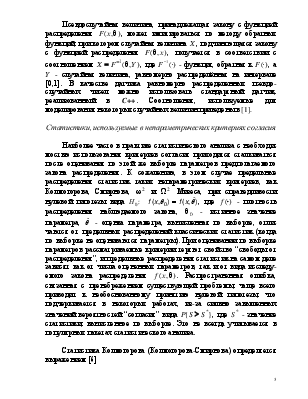 В данном случае предусматривается моделирование “предельных” (и при заданных конечных объемах выборок) законов распределения статистик непараметрических критериев для различных сложных гипотез (при различных методах оценивания) и последующая идентификации полученных эмпирических законов.