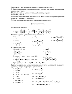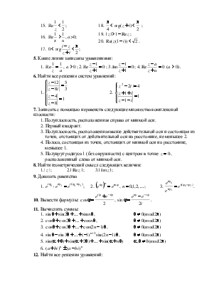 4. Дать геометрическое описание множеств всех точек комплексной плоскости, удовлетворяющих следующим соотношениям: