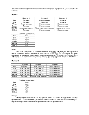 Провести анализ конкурентоспособности вашей продукции (продукты 1-3) на конец 5 и 10 периодов.