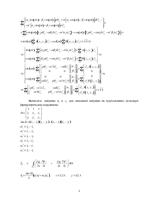 , произведя разбиение расчетной области  на непересекающиеся подобласти , воспользуемся аддитивностью интеграла по области:  , таким образом, можно рассматривать вклад отдельных конечных элементов в i-тое уравнение системы.