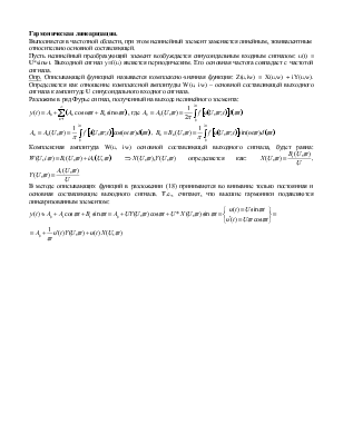 Пусть нелинейный преобразующий элемент возбуждается синусоидальным входным сигналом: u(t) = U*sinwt. Выходной сигнал y=f(u) является периодическим. Его основная частота совпадает с частотой сигнала.