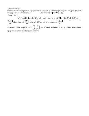 y0 = f(M). Предположим, что переменная y определена в N выборочных точках вблизи М, N>n. Т.е., yi = f(x1i, x2i, …, xni). Линеаризованная модель, имеем вид: (13)  Надо найти аi. Составим сумму квадратов отклонений для выборочных точек, используя коэффициенты линеаризованной модели.. (14) Необходимое условие минимума суммы квадратов (14) в том, что все частные производные