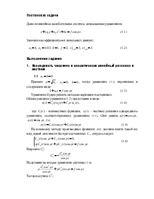 Итак, коэффициенты уравнения найдены, подставим решение в уравнение первого приближения: