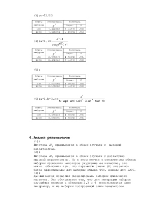 Гипотеза  принимается в обоих случаях с достаточно высокой вероятностью. Но в этом случае с увеличением объема выборки произошло некоторое ухудшение ее качества, это можно  объяснить тем, что параметры схемы (8) оказались более эффективными для выборки объема 500, нежели для 1200.