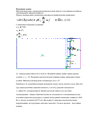 Найти распределение температуры внутри расчетной области с постоянным источником тепловыделения заданной мощности.