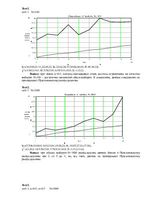 Далее сравниваем полученное значение выражения (3) и значение квантиля -распределения порядка (1-a) c (L-1) степенями свободы. И если значение выражения (3) оказывается меньше, чем значения квантиля, то выборка имеет Пуассоновское распределение.