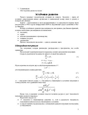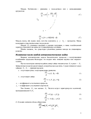 Модель (3) учитывает инерцию в реакции популяции, а также колебательный характер стремления численности к стационарному состоянию.