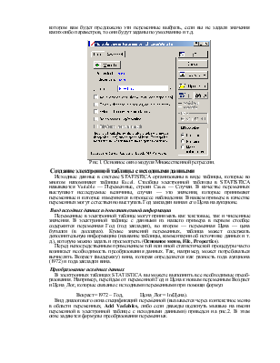 Переменные в электронной таблице могут принимать как текстовые, так и численные значения. В электронной таблице с данными из нашего примера в первом столбце содержится переменная Год (год закладки), во втором — переменная Цена — цена