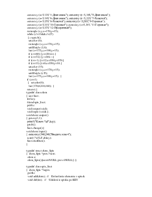 Разработать программу  на языке С++, в которой был бы определен класс-контейнер для объектов класса, разработанного в предыдущей лабораторной работе. Контейнер должен быть реализован как динамическая структура данных, для представления элементов контейнера разработать класс типа «элемент». Предусмотреть функции для  помещения объектов-фигур в контейнер, их удаления, поиска в контейнере, «распечатки содержимого» контейнера – последовательного вывода на экран содержащихся в объекте-контейнере фигур.