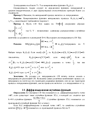 Замечание. Из условия с.к. непрерывности СП ничего нельзя сказать о непрерывности реализаций СП. Возможны самые различные комбинации: процесс с.к. непрерывен, но почти все его траектории разрывные функции, или же все траектории процесса непрерывные функции, сам же процесс не является с. к. непрерывным и т.д.