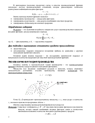 В многомерном (несколько продуктов) случае в качестве производственной функции используют систему производственных отношений, которые удовлетворяют технически реализуемым комбинациям входных факторов