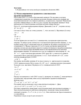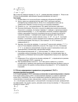 5. Заметим, что в качестве матрицы  в системе (7) нельзя взять матрицу , если к (7) мы собрались применять схему (2). Это следует из того, что матрица   не является симметричной, тогда как схема (2) применима только для симметричных, положительно определенных матриц.