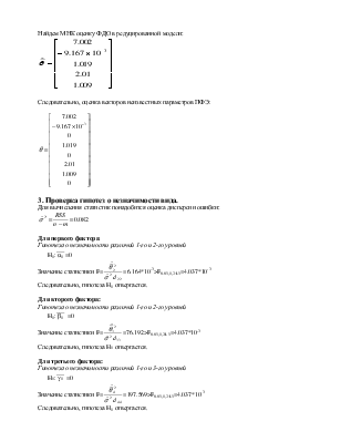 Следовательно, оценка векторов неизвестных параметров ПФЭ: