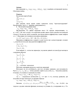 Предположим, что данная коррекция имеет 3-й порядок аппроксимации, т.е. . Из этого следует, что коррекция должна давать точное решение на полиномах степени 2. В качестве такого полинома, для определения коэффициентов, можно выбрать . Подставим этот полином в исходную коррекцию: