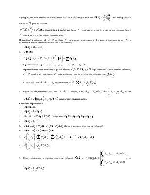 -алгебра – это класс  -множеств из бесконечного множества элементарных исходов , удовлетворяющий условиям: ,  и если событий , то и событие , или это класс -множеств, замкнутый относительно счетного числа арифметических операций.